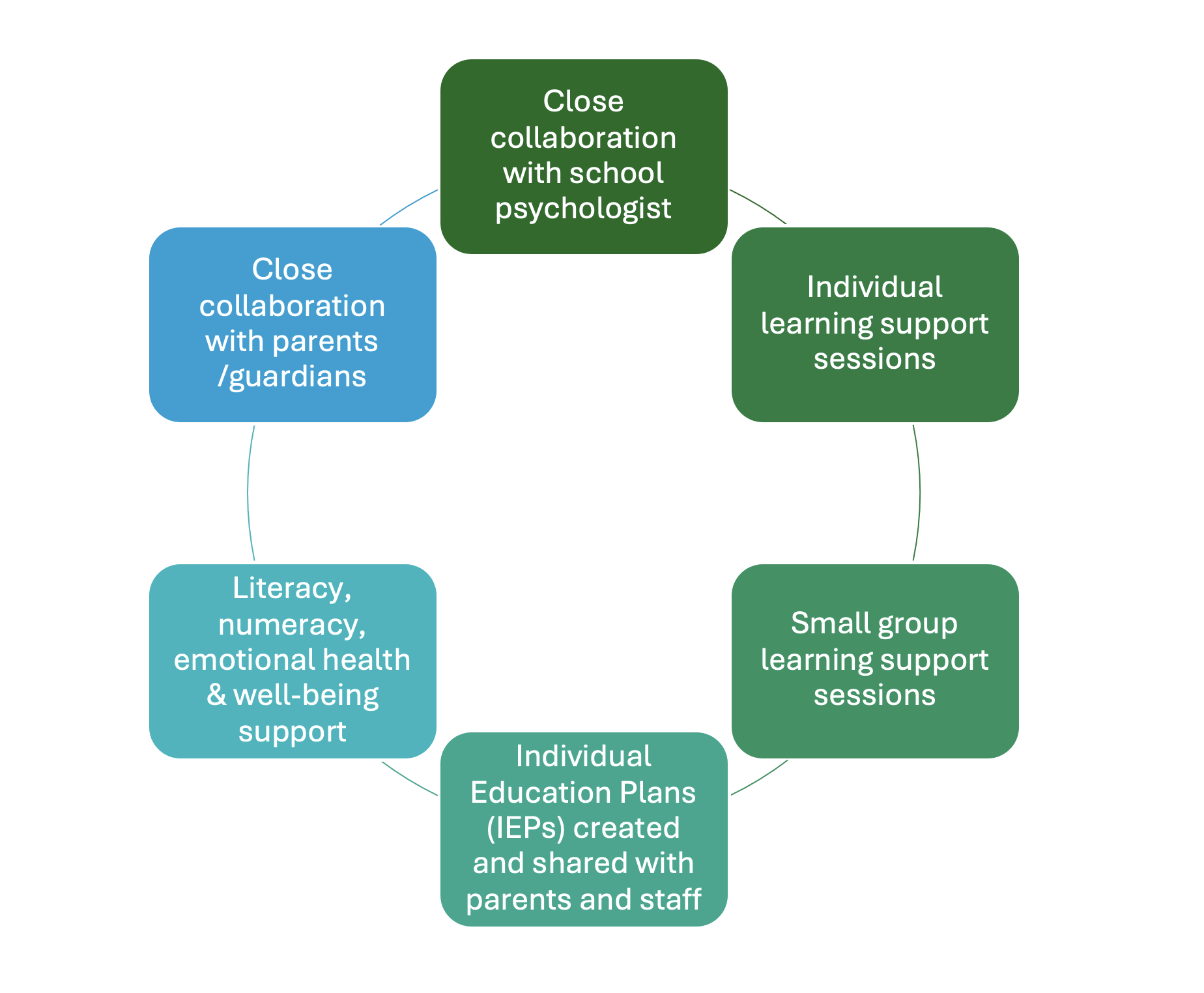 Some pupils may encounter difficulties in learning for a variety of reasons. Our learning support programme has been established to meet the needs of children who are facing challenges. The learning support programmes are tailored to the needs of pupils and provide our children with opportunities to progress in key areas of learning.
