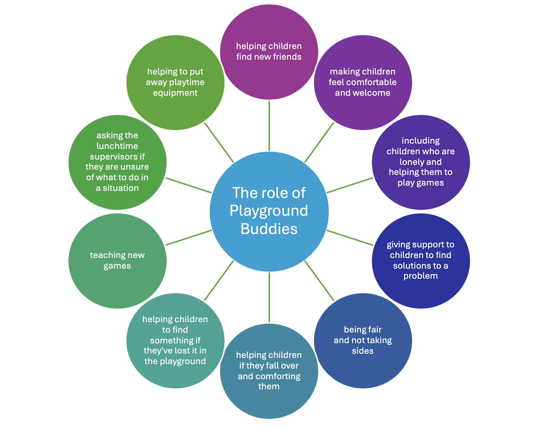 A rota is drawn up so all buddies are on duty for one playtime and one lunchtime play per week.